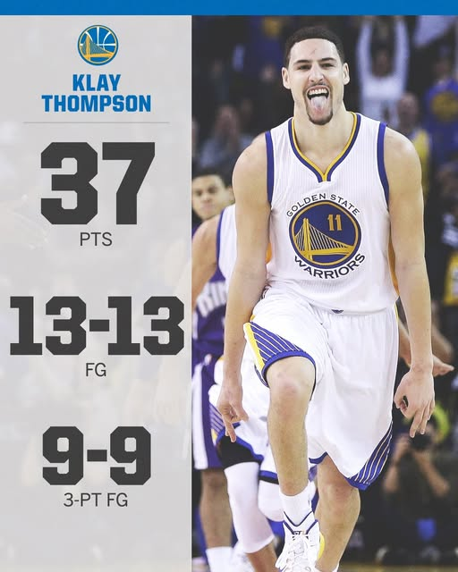 在这场比赛中,克莱-汤普森全场砍下52分5助攻4抢断2盖帽,其中投进11记三分。