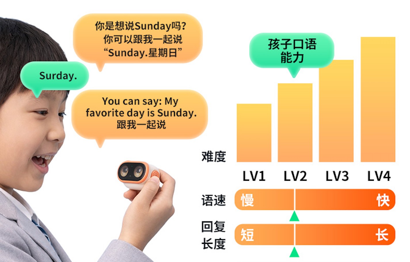LOOKEE白话侠以无屏陪伴形态,要点切入6-12岁儿童的白话学习场景。无屏化的上风不仅是保护眼光,它更通过移除视觉依赖,迫使孩童回首“听”与“说”的谈话本体,在纯正的音频交互中贯通问题并给出修起,构建内在的谈话逻辑。